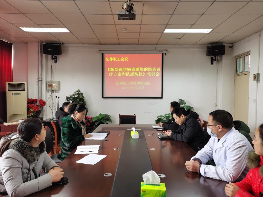 2020年1月21日,按照南阳市卫健委及示范区卫管中心要求,校医院进入疫情备战状态。校医院迅速成立了新型冠状病毒感染的肺炎防控领导小组,积极参加市、区卫生管理部门的培训会议,对全院职工进行了新型冠状病毒感染的肺炎诊疗方案培训,积极采购防控物资,为防控疫情做好准备。
