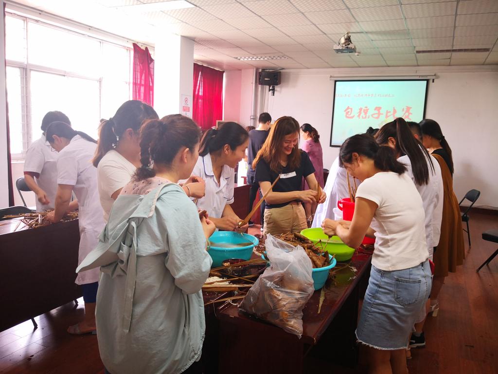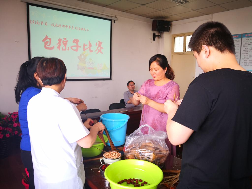 活动一开始,随着计时员齐保东书记的一声令下,大家快速的包起粽子来,医护人员在活动中,积极学习如何包粽子。这个粽叶怎么卷?我的米是不是放多了?包粽子用几片叶子呀?卷粽叶、分别放米大枣花生、捆扎,说笑中大家体验着制作美食的快乐。经过两个多小时的努力,几十斤的大米变成了一个个满怀情义的粽子。大家纷纷表示,以如此特殊的方式欢度佳节,让我们切身感受到了端午节浓浓的节日气氛,也感受到了医院领导对大家的细致关怀。