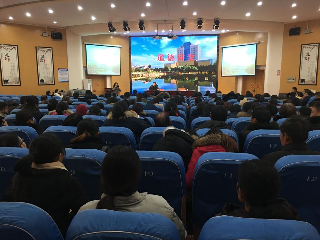 12月12日下午,校医院联合后勤管理与服务中心在领创空间二楼会议室举办以“讲道德,从礼貌做起”为主题的道德讲堂活动。审计处处长王福祥担任主讲,校医院和后勤管理与服务中心全体教职工参加。
