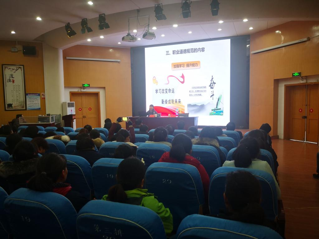 “我们从古以来,就有埋头苦干的人,有拼命硬干的人,有为民请命的人,有舍生求法的人,……虽是等于为帝王将相作家谱的所谓“正史”,也往往掩不住他们的光耀,这就是中国的脊梁。”从鲁迅先生的这一段名言开篇,胡磊教授从正确认识职业、职业道德;加强职业道德建设的意义;职业道德规范的内容三个方面,结合工作实际,运用典型的案例,生动活泼、浅析易懂的语言将职业道德进行了深入且全面的讲解,并且通过互动性的问题与与会职工进行了探讨及延伸,使职工们深刻领会拥有良好职业道德的重要性和必要性,同时也是一次加强员工自身道德修养,提高自身职业道德素质的难得学习机会。