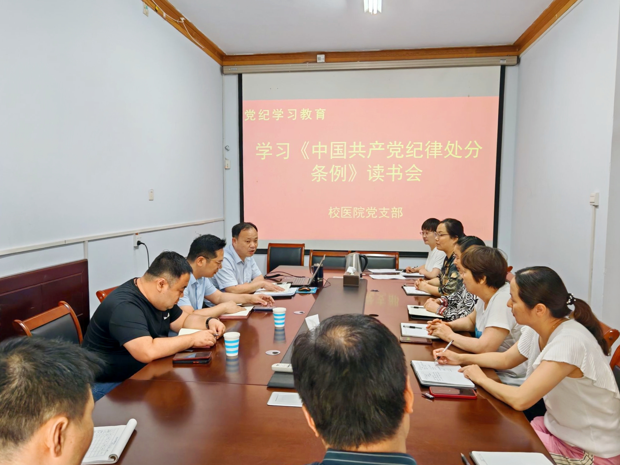 5月22日,校医院党支部开展《中国共产党纪律处分条例》读书交流会,全体党员干部参加会议,校党委第二巡察组成员出席会议。