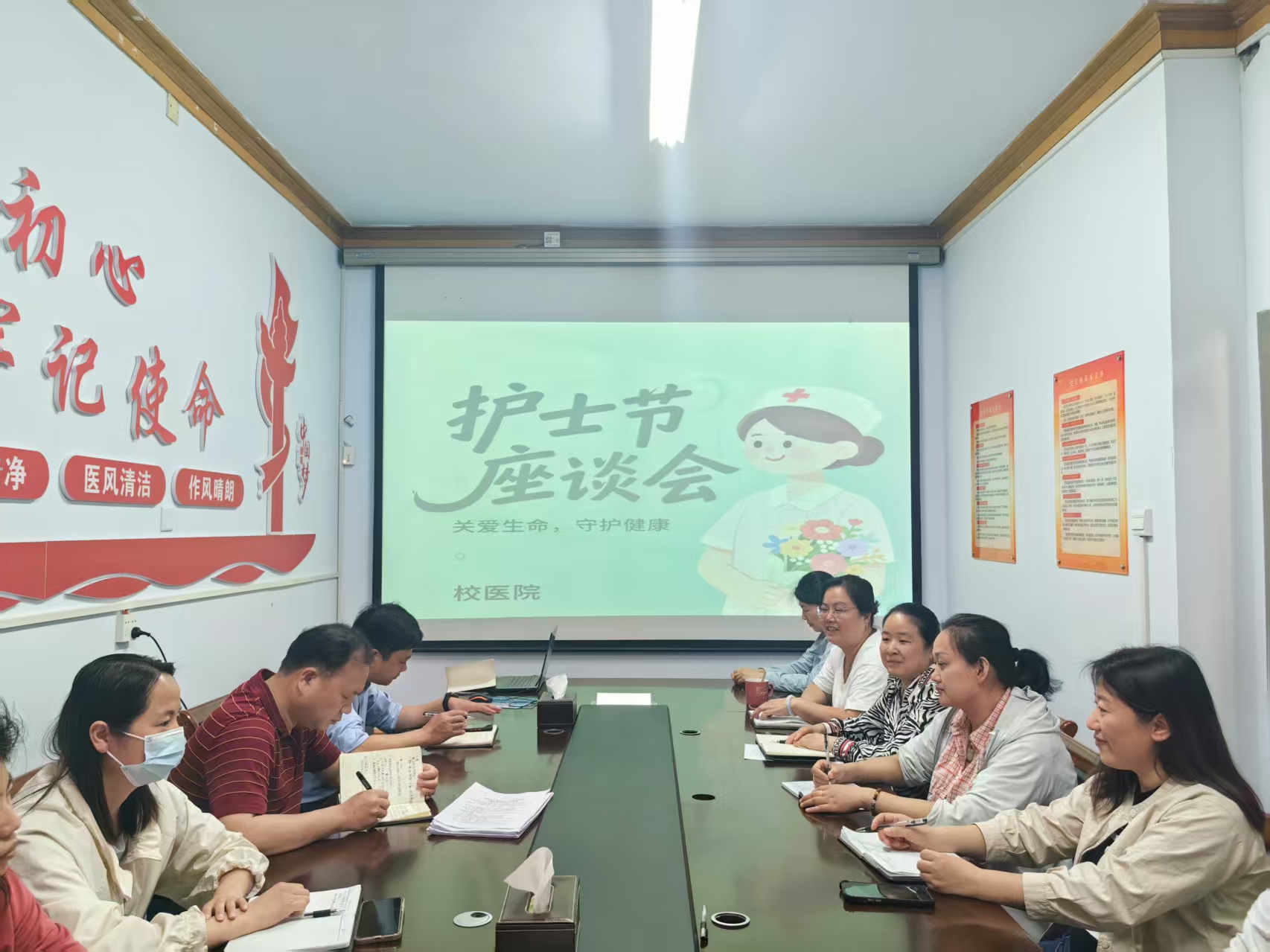 在第114个国际护士节来临之际,5月9日下午,校医院隆重召开"传承护理精神 守护师生健康"主题座谈会。医院领导班子、全体医护人员齐聚一堂,共话护理事业初心使命,现场气氛温馨而热烈。