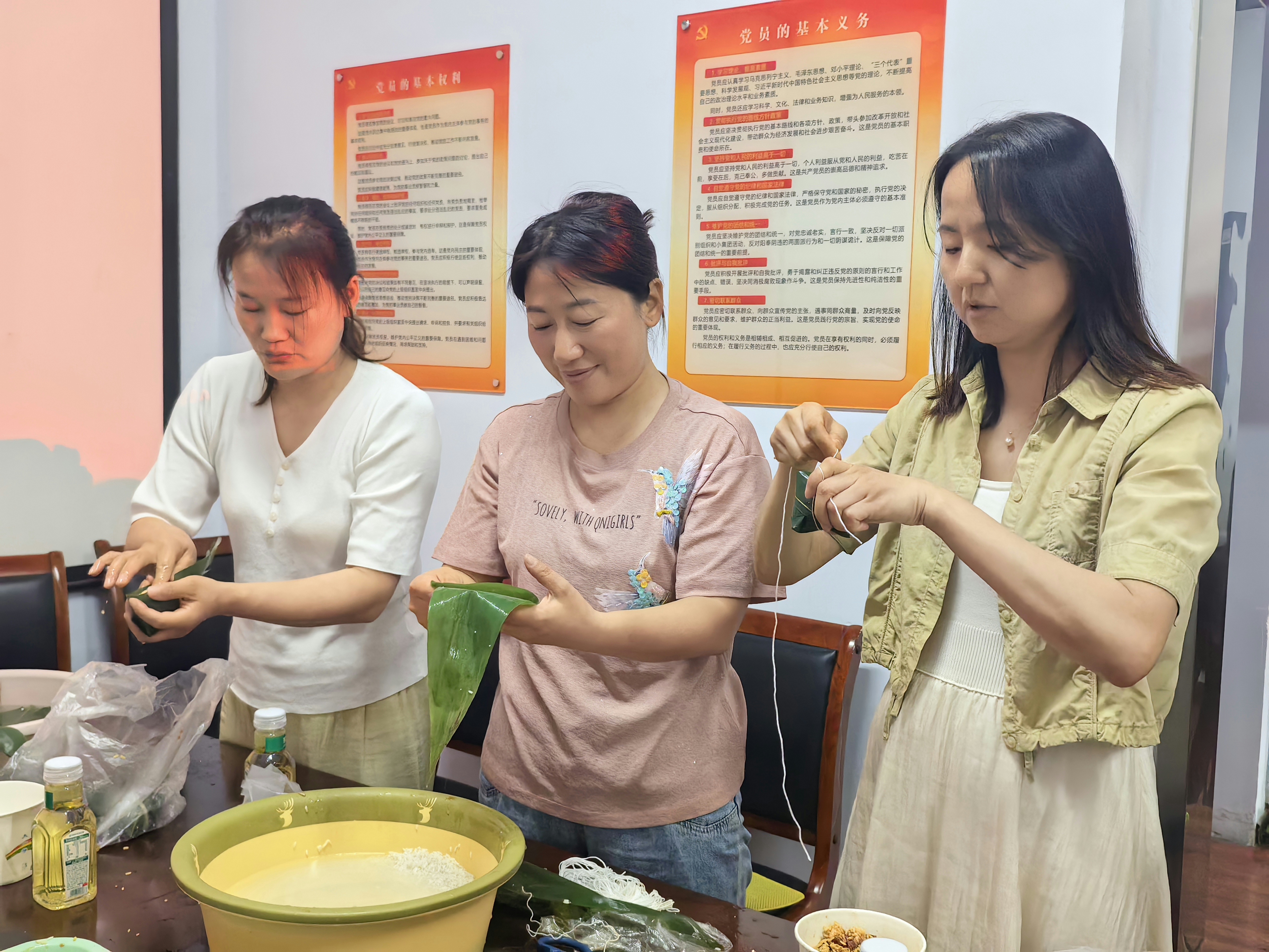 活动伊始,会议室里早已备好了翠绿的粽叶、晶莹的糯米、饱满的红枣等新鲜食材,整齐有序地摆放开来。在主持人简短介绍活动流程后,包粽子活动正式拉开帷幕。现场气氛热烈,经验丰富的“老师傅”们主动分享包粽技巧,新手们则虚心求教、跃跃欲试。只见一双双巧手翻飞,粽叶舞动、糯米飘香,从最初的略显生疏到逐渐驾轻就熟,一个个棱角分明、形态各异的粽子在欢声笑语中诞生。大家相互交流心得、分享喜悦,在动手实践中不仅体验了传统习俗的魅力,更增进了同事间的了解与情谊,会议室里充满了其乐融融的节日气息与团队协作的和谐氛围。