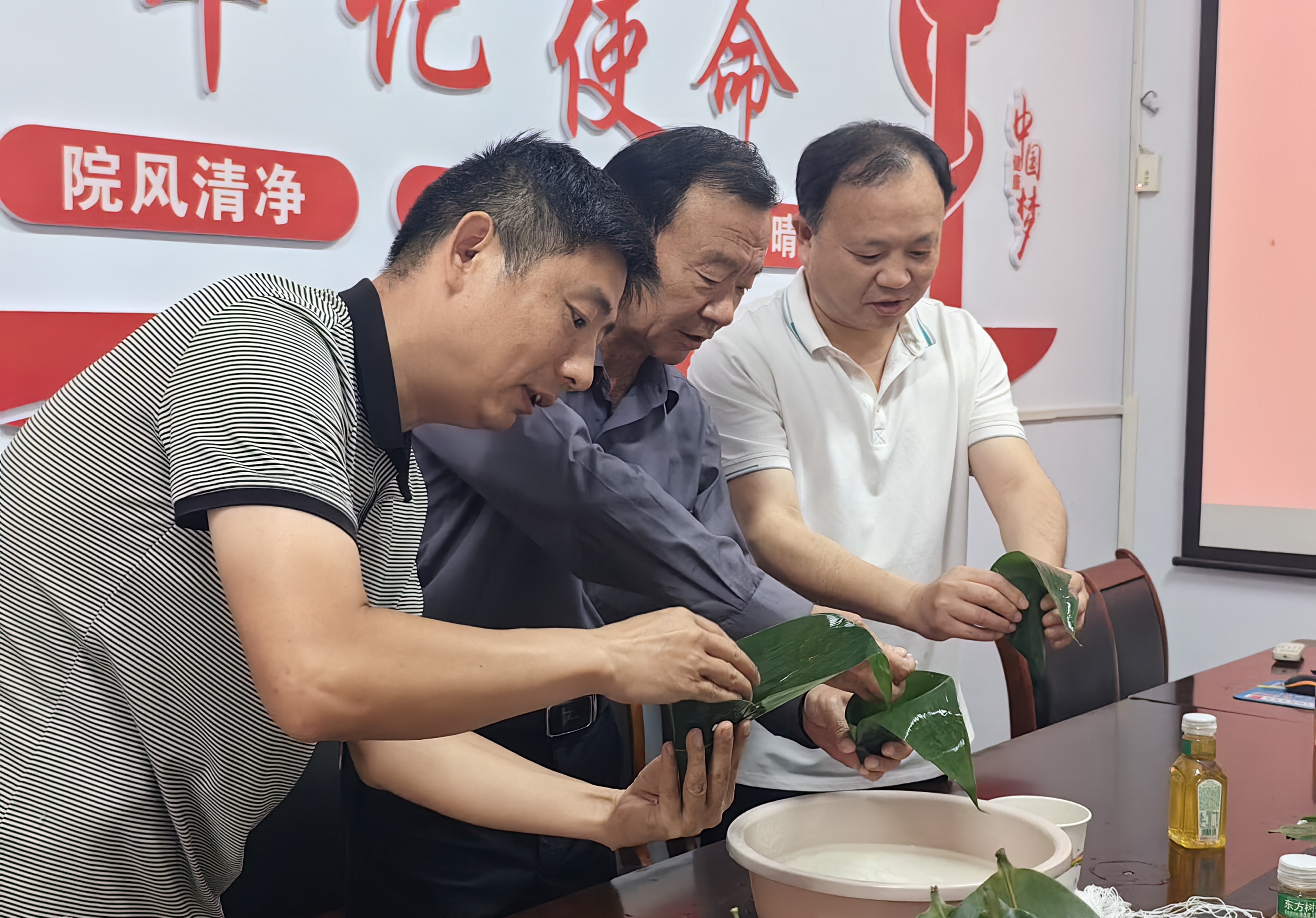 活动中,学工党委杨少文书记的到来将现场气氛推向高潮。杨书记兴致勃勃地走到职工们中间,亲切地与大家交流互动,并饶有兴致地动手学习包粽子。他一边虚心请教包粽子的诀窍,一边关切地询问职工们的工作和生活状况。杨书记充分肯定了校医院全体职工为保障全校师生健康所付出的辛勤努力和默默奉献,并借此佳节之际,向大家致以诚挚的节日问候和美好的祝福。书记的亲切关怀和热情参与,让在场的每一位职工倍感温暖与鼓舞。大家纷纷表示,这份关怀转化为强大的动力,今后将以更加饱满的热情和昂扬的斗志投入到学校医疗保障服务工作中去,为师生健康保驾护航。(校对/尤龙飞 审核/丁伟 终审/)